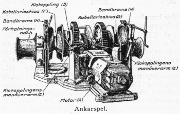 Ankarspel, mekanisk inrättning, varmed ankaret upplyftes från sjöbottnen. På nyare, större ångfartyg drivas a. alltid med ånga el. elektricitet.