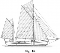 Ketchen, fig. 15, skiljer sig från yawlen endast däri, att gäckmasten är placerad för om den plats, där styrningen sker, medan den i en yawl står akter om denna plats. Gäckseglet är dessutom något större hos ketchen än hos yawlen.
