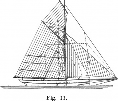 Kutter. Kuttern är vanligen skarpt byggd och har jämförelsevis stort djupgående, fig. 11. Masten består av undermast med stång. Klyvarbommen ligger horisintalt, bogspröt saknas. Den för storsegel, gaffeltoppsegel, stagfock och klyvare, ibland även jagare och bredfock. Riggningssättet var förr mycket vanligt å fartyg för skilda ändamål.