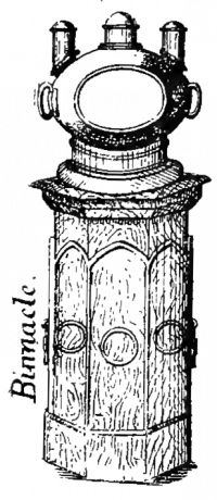 Binnacle Hood. The glass-front cover to the binnacle stand, and into which the binnacle lamps are fitted.